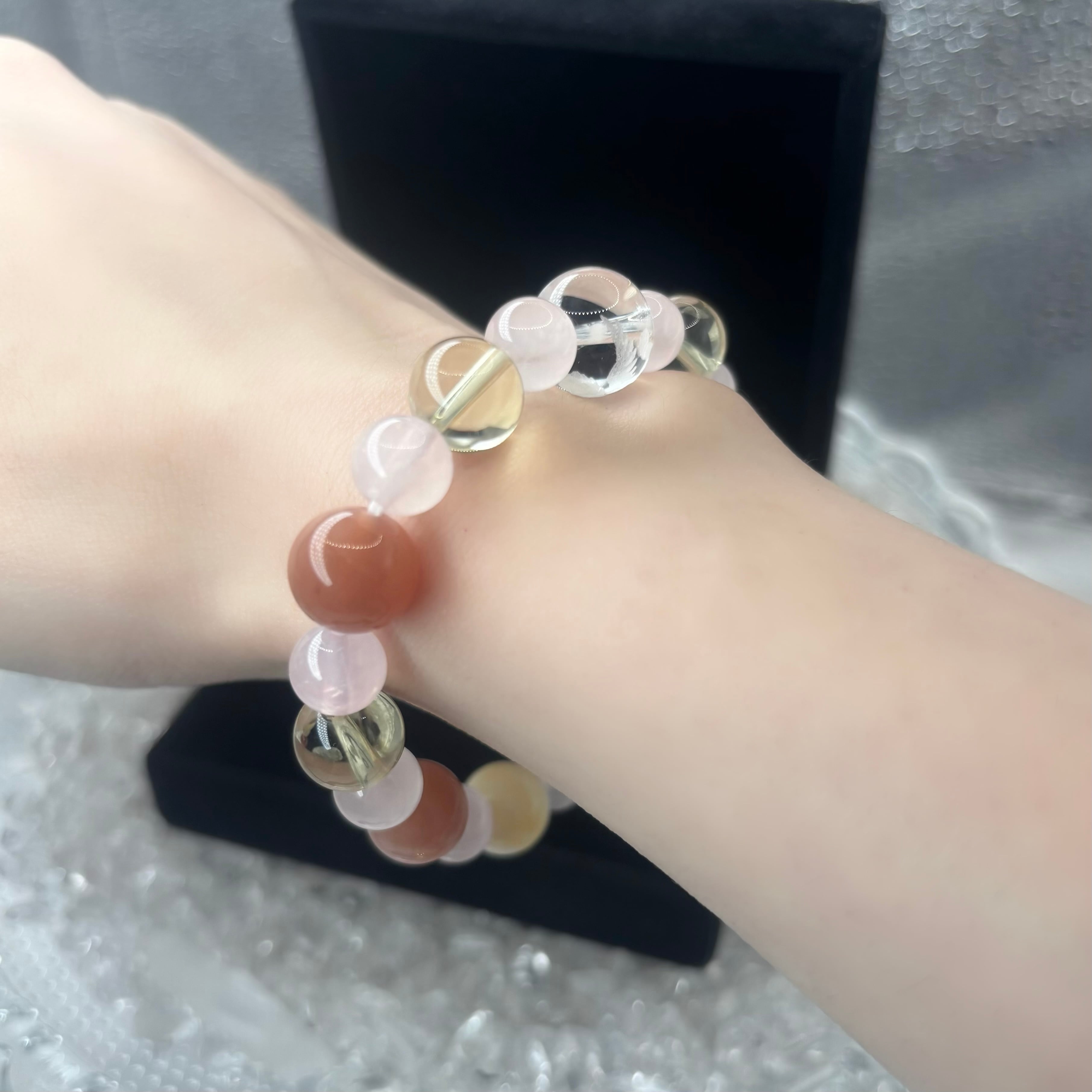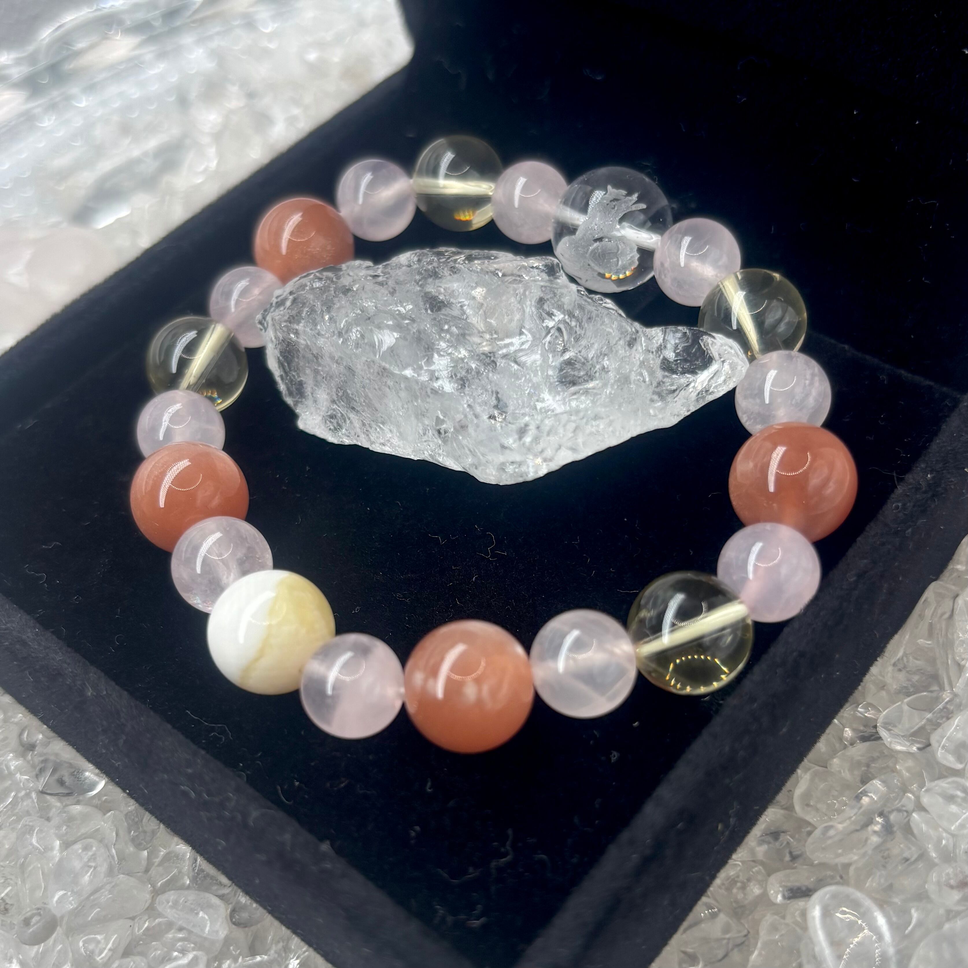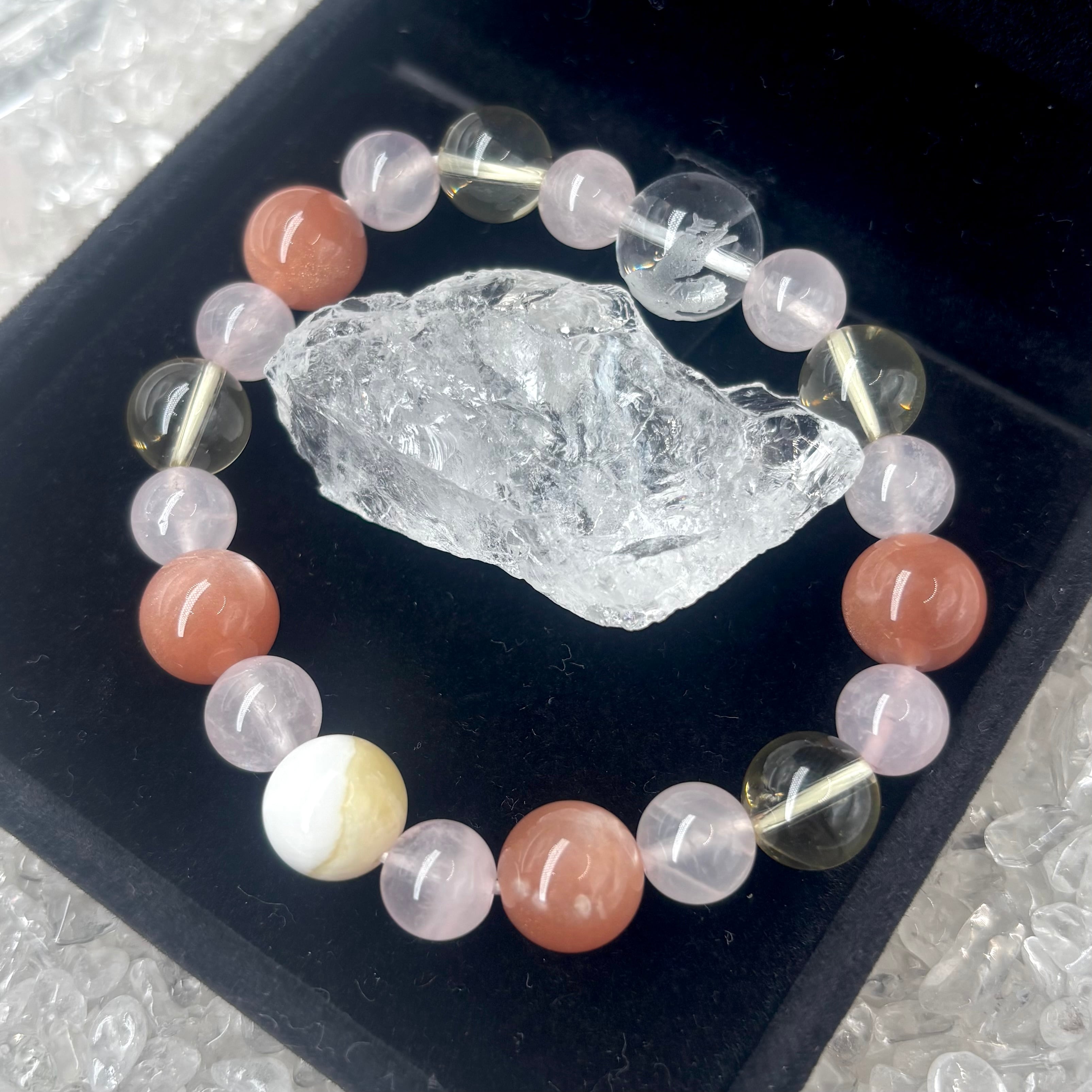 オレンジムーンストーンとローズクォーツで