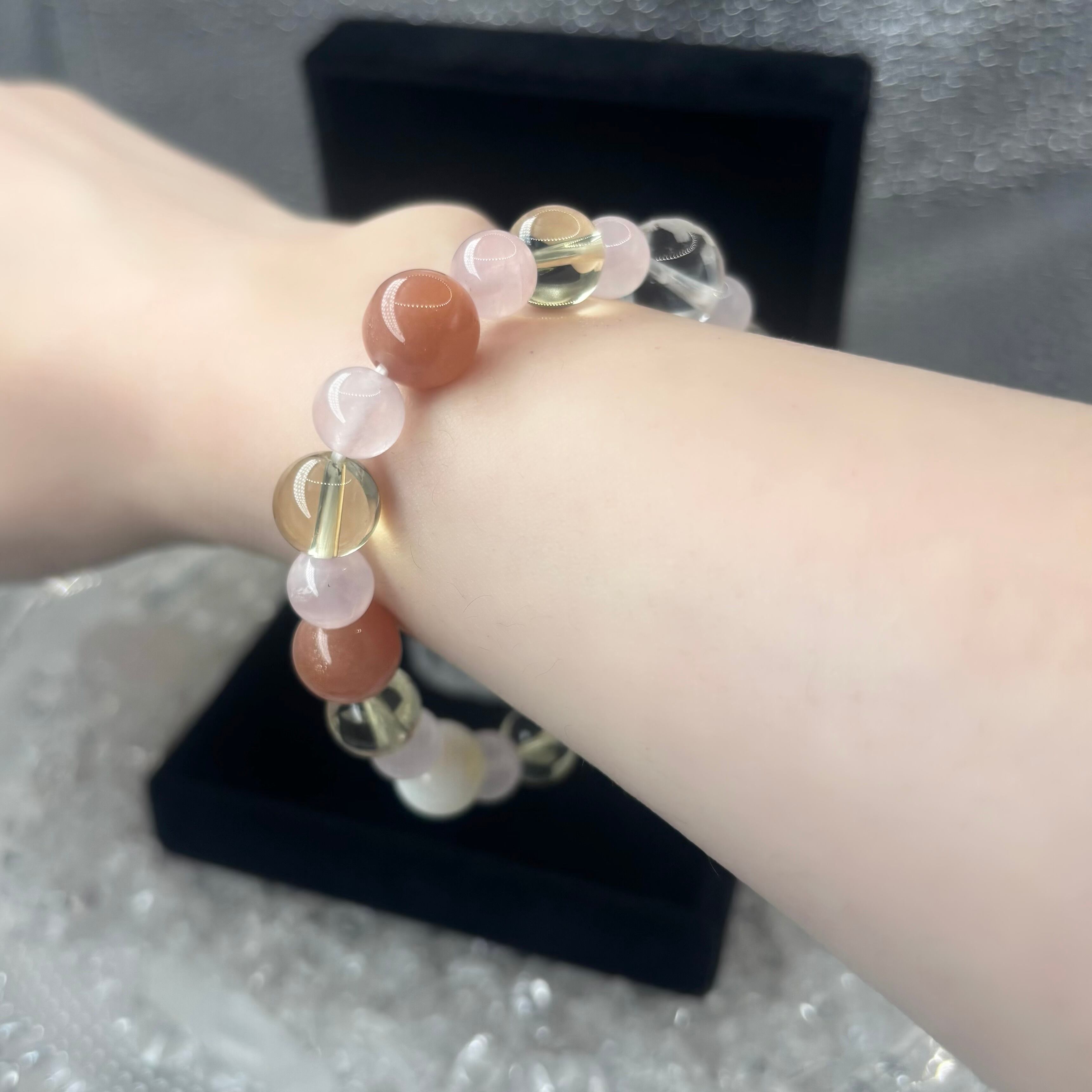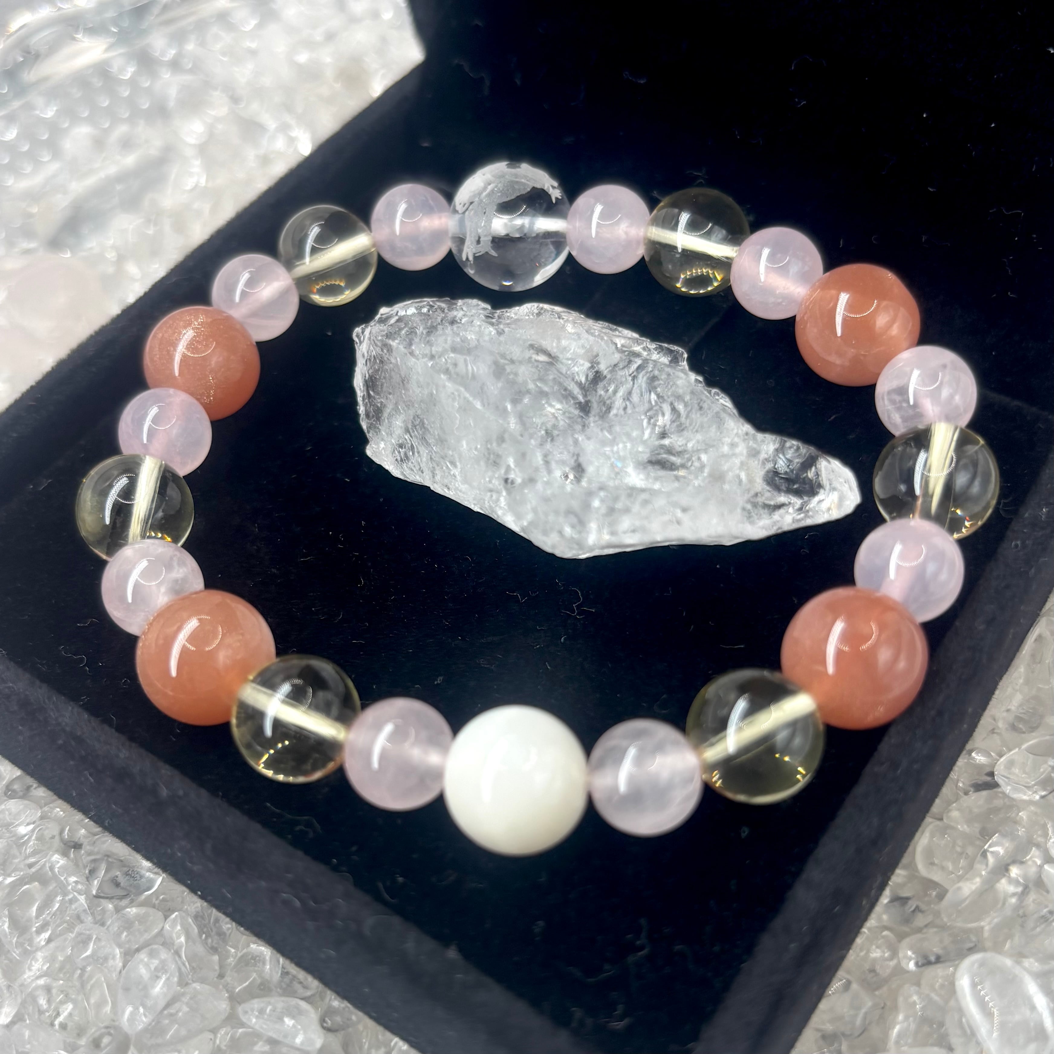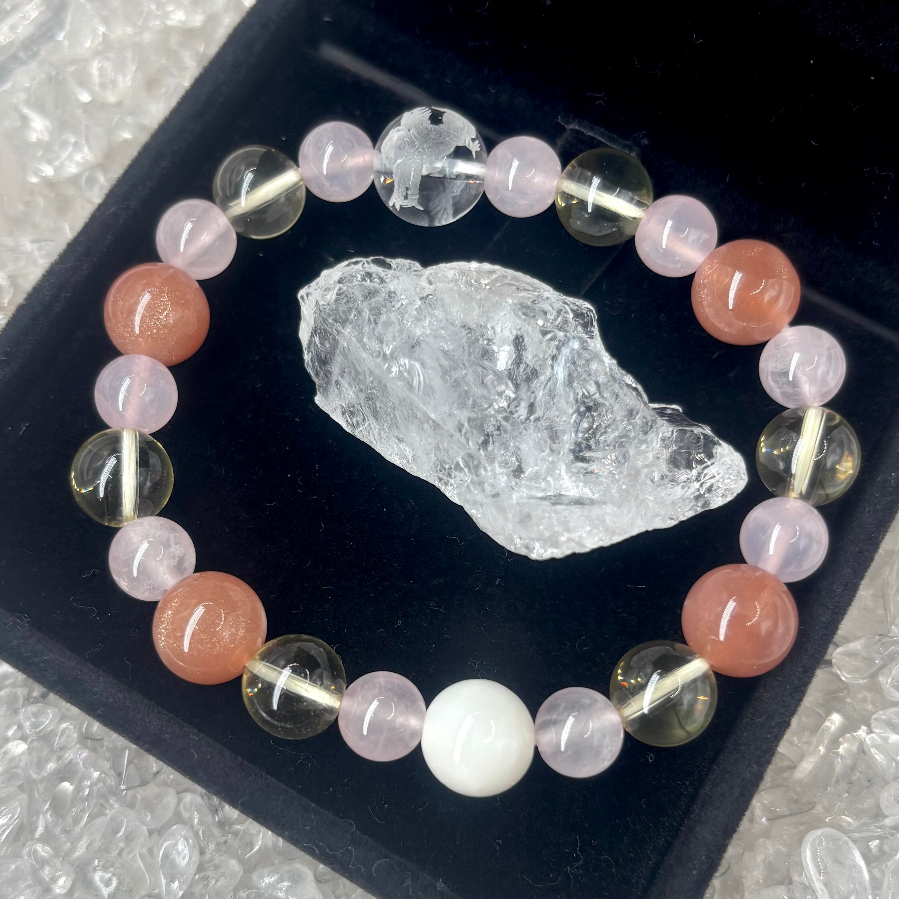 オレンジムーンストーンとローズクォーツで